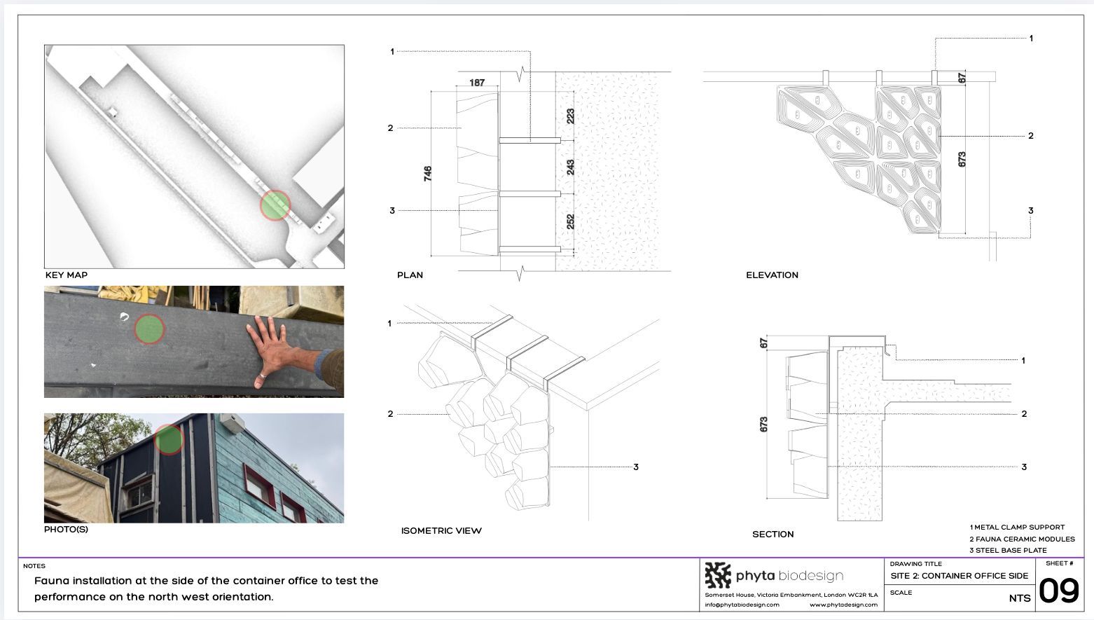 Installation detail prepared to describe the method of installation. Specced and coordinated all component sourcing from custom CNC'd steel panels to bespoke clamp system.