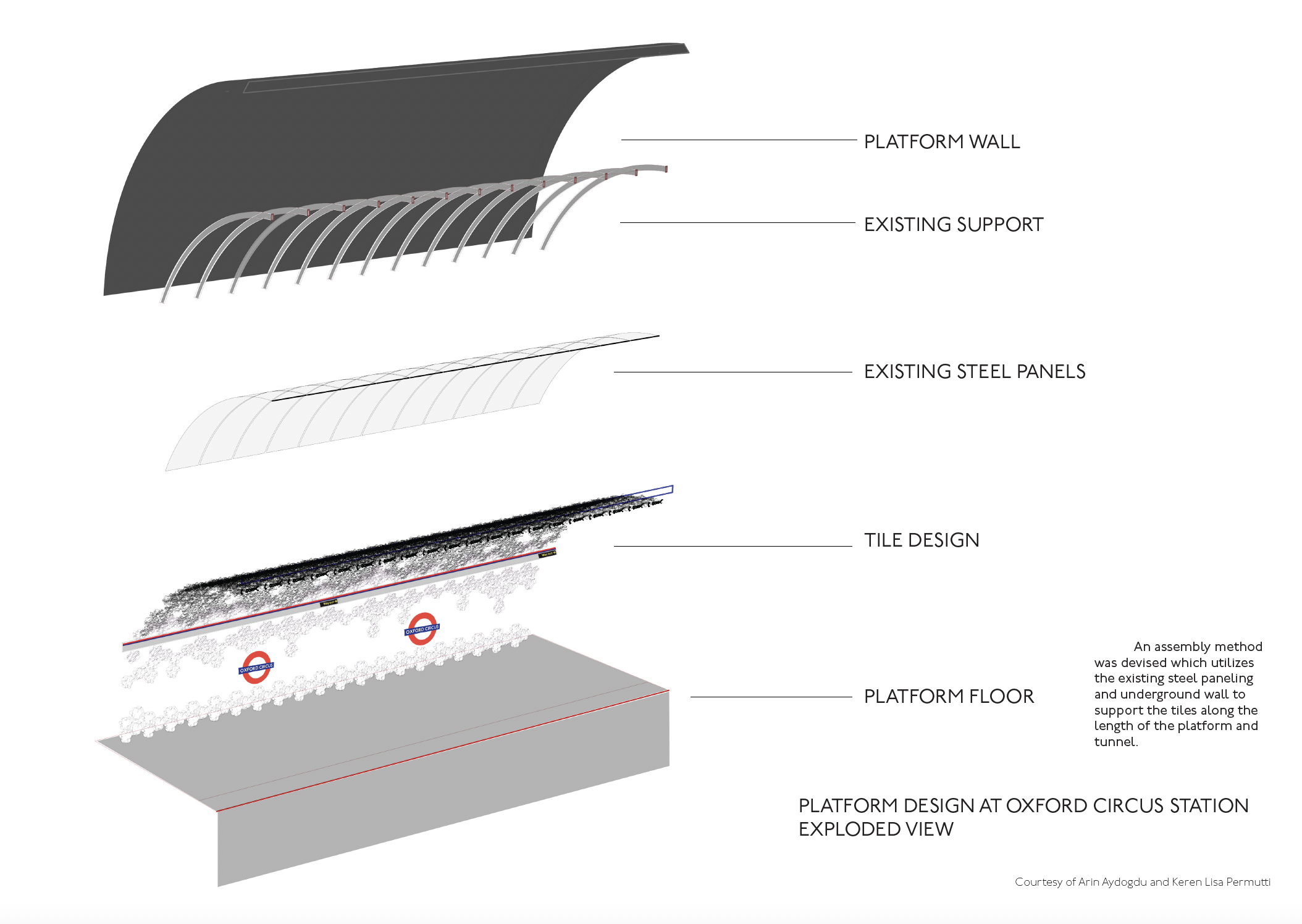 The paneling system is designed to be installed onto existing wall paneling within the platform. The simple, lightweight design enables rapid installation by a small team of non-specialist workers.